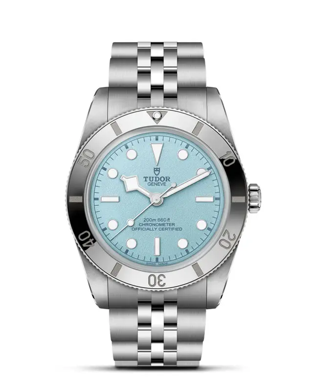 Il Black Bay 54 è il modello più fedele al primissimo orologio subacqueo di TUDOR, la referenza 7922, che sia mai stato creato finora. La cassa di 37 mm riprende le proporzioni classiche di un tempo, ma racchiude nel Calibro di Manifattura MT5400 tutto il know‑how moderno di TUDOR e vanta un’impermeabilità fino a 200 m. Una versione speciale dal nome di “Lagoon Blue” si ispira al colore degli oceani tropicali e presenta un quadrante “Lagoon Blue” con texture sabbiata, un bracciale a cinque maglie e una lunetta lucidata a specchio.